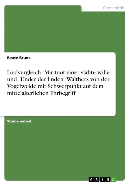 Liedvergleich Mir tuot einer slahte wille und Under der linden Walthers von der Vogelweide mit Schwerpunkt auf dem mittelalterlichen Ehrbegriff (German Edition) full version