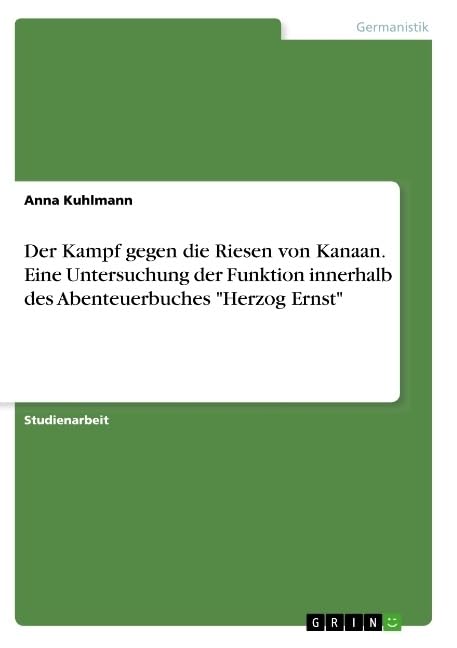 Der Kampf gegen die Riesen von Kanaan. Eine Untersuchung der Funktion innerhalb des Abenteuerbuches "Herzog Ernst" (German Edition) full version