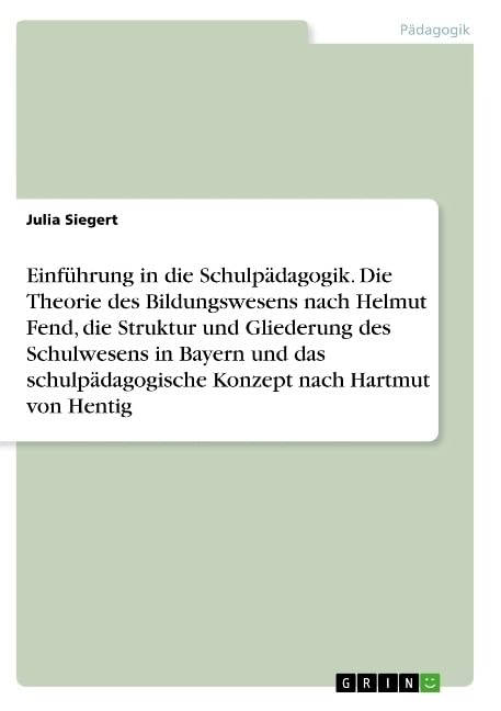 Einführung in die Schulpädagogik. Die Theorie des Bildungswesens nach Helmut Fend, die Struktur und Gliederung des Schulwesens in Bayern und das ... nach Hartmut von Hentig (German Edition) full version