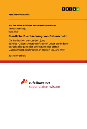 Staatliche Durchsetzung von Datenschutz: Die Institution der Landes- (und Bundes-)Datenschutzbeauftragten unter besonderer Berücksichtigung der ... in Hessen im Jahr 1971 (German Edition) full version