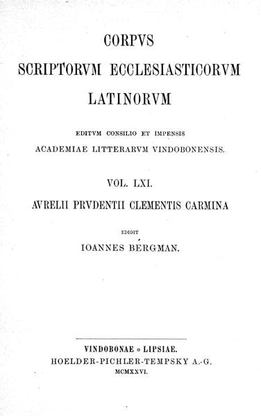Aurelii Prudenti Clementis Carmina (Corpus Scriptorum Ecclesiasticorum Latinorum) (Latin Edition) full version