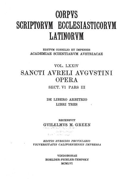 Augustinus de Libero Arbitrio - Ed. W. M. Green/ Reprint (Corpus Scriptorum Ecclesiasticorum Latinorum) (Latin Edition) full version