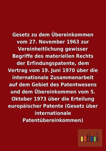 Gesetz zu dem Übereinkommen vom 27. November 1963 zur Vereinheitlichung gewisser Begriffe des materiellen Rechts der Erfindungspatente, dem Vertrag ... und über die Ertei (German Edition) full version