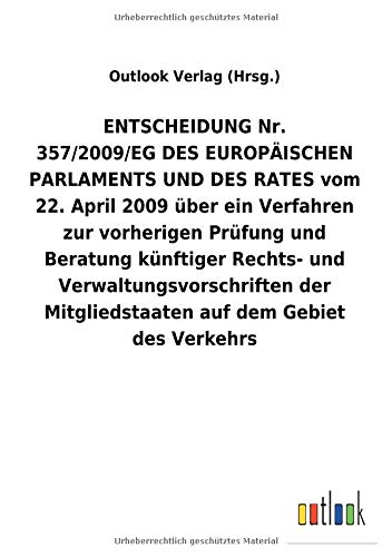 You are about to access our book library "ENTSCHEIDUNG Nr. 357/2009/EG DES EUROPÄISCHEN PARLAMENTS UND DES RATES vom 22. April 2009 über ein Verfahren zur vorherigen Prüfung und Beratung ... auf dem Gebiet des Verkehrs (German Edition) full version"