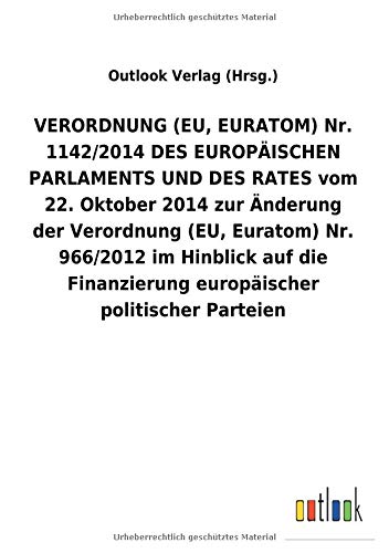VERORDNUNG (EU, EURATOM) Nr. 1142/2014 DES EUROPÄISCHEN PARLAMENTS UND DES RATES vom 22. Oktober 2014 zur Änderung der Verordnung (EU, Euratom) Nr. ... politischer Parteien (German Edition) full version