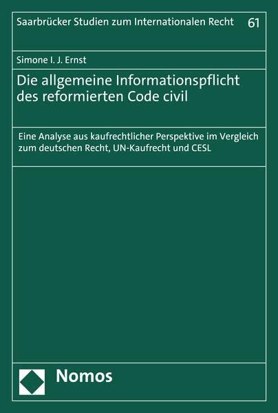 You are about to access our book library "Die allgemeine Informationspflicht des reformierten Code civil: Eine Analyse aus kaufrechtlicher Perspektive im Vergleich zum deutschen Recht, UN-Kaufrecht ... Internationalen Recht 61) (German Edition) full version"