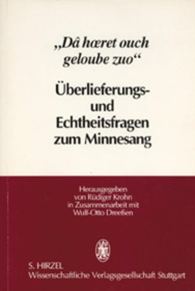 Dâ hœret ouch geloube zuo: Überlieferungs- und Echtheitsfragen zum Minnesang : Beiträge zum Festcolloquium für Günther Schweikle anlässlich seines 65. Geburtstags (German Edition) full version