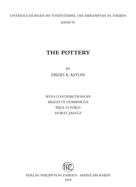 Untersuchungen im Totentempel des Merenptah in Theben: Band IV: The Pottery (Beitrage Zur Agyptischen Bauforschung Und Altertumskunde) (German Edition) full version