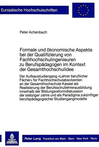 Formale und ökonomische Aspekte bei der Qualifizierung von Fachhochschulingenieuren zu Berufspädagogen im Kontext der Gesamthochschulidee: Der ... Universitaires Européennes) (German Edition) full version