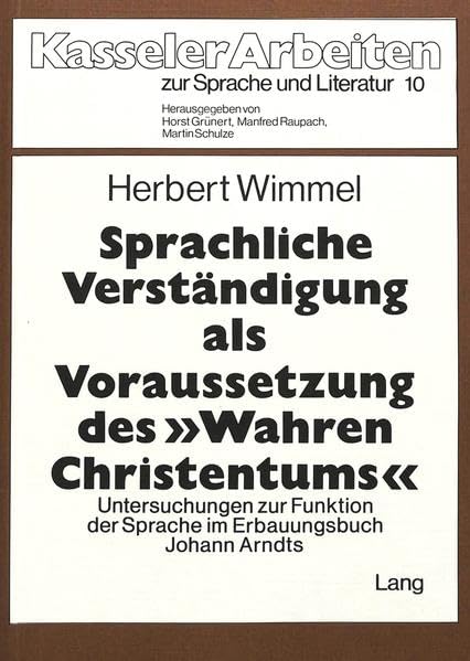 Sprachliche Verständigung als Voraussetzung des «wahren Christentums»: Untersuchungen zur Funktion der Sprache im Erbauungsbuch Johann Arndts ... zur Sprache und Literatur) (German Edition) full version