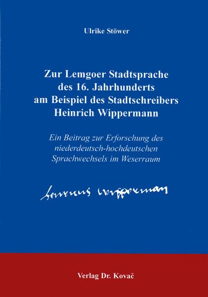 Zur Lemgoer Stadtsprache des 16. Jahrhunderts am Beispiel des Stadtschreibers Heinrich Wippermann. Ein Beitrag zur Erforschung des niederdeutsch-hochdeutschen Sprachwechsels im Weserraum full version