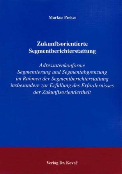 You are about to access our book library "Zukunftsorientierte Segmentberichterstattung. Adressatenkonforme Segmentierung und Segmentabgrenzung im Rahmen der Segmentberichterstattung insbesondere zur Erfüllung des Erfordernisses der Zukunftsorientiertheit full version"