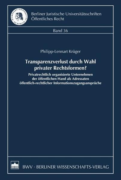 Transparenzverlust Durch Wahl Privater Rechtsformen?: Privatrechtlich Organisierte Unternehmen Der Offentlichen Hand ALS Adressaten Offentlich-Rechtlicher Informationszugangsanspruche full version