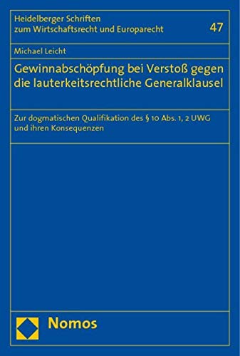 Gewinnabschopfung Bei Verstoss Gegen Die Lauterkeitsrechtliche Generalklausel: Zur Dogmatischen Qualifikation Des 10 Abs. 1, 2 Uwg Und Ihren ... Und Europarecht) (German Edition) full version