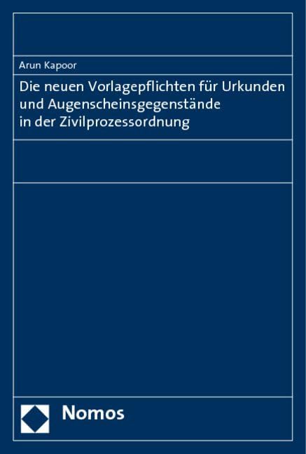 Die Neuen Vorlagepflichten Fur Urkunden Und Augenscheinsgegenstande in Der Zivilprozessordnung (German Edition) full version