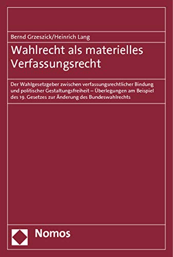 Wahlrecht als materielles Verfassungsrecht: Der Wahlgesetzgeber zwischen verfassungsrechtlicher Bindung und politischer Gestaltungsfreiheit - ... Gesetzes zur Änderung des Bundeswahlrechts full version