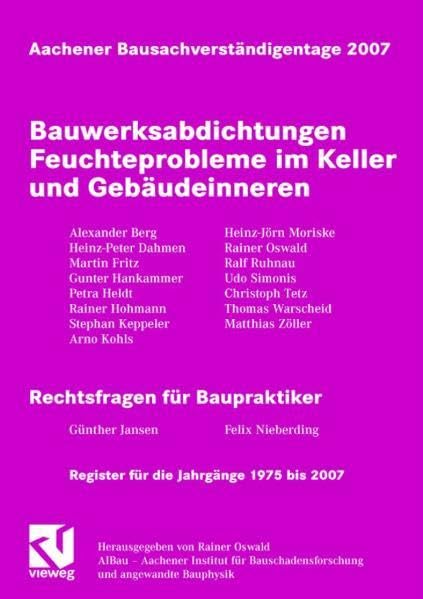 Aachener Bausachverständigentage 2007: Bauwerksabdichtungen: Feuchteprobleme im Keller und Gebäudeinneren (German Edition) full version