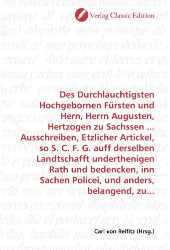 You are about to access our book library "Des Durchlauchtigsten Hochgebornen Fürsten und Hern, Herrn Augusten, Hertzogen zu Sachssen ... Ausschreiben, Etzlicher Artickel, so S. C. F. G. auff ... und anders, belangend, zu... (German Edition) full version"