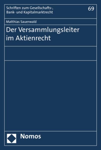 Der Versammlungsleiter Im Aktienrecht (Schriften Zum Gesellschafts-, Bank- Und Kapitalmarktrecht) (German Edition) full version
