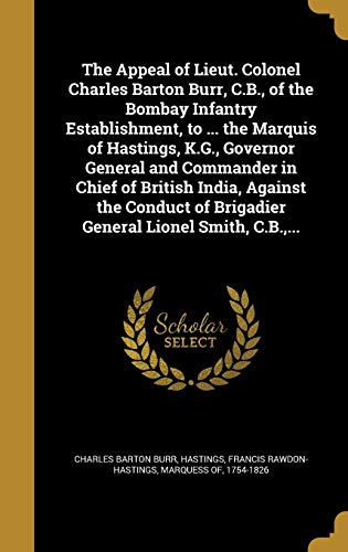 You are about to access our book library "The Appeal of Lieut. Colonel Charles Barton Burr, C.B., of the Bombay Infantry Establishment, to ... the Marquis of Hastings, K.G., Governor General ... of Brigadier General Lionel Smith, C.B.,... full version"