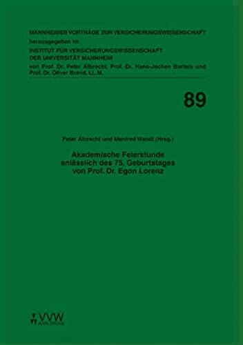 Akademische Feierstunde anlässlich des 75. Geburtstages von Prof. Dr. Egon Lorenz: (Mannheimer Vorträge zur Versicherungswissenschaft Band 89) (German Edition) full version