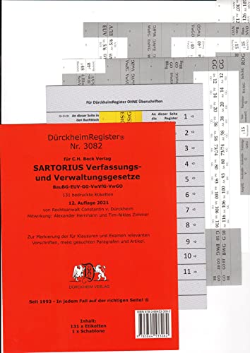 DürckheimRegister® SARTORIUS (2021) Gesetze und §§: 131 Registeretiketten (sog. Griffregister) für deinen SARTORIUS, Verfassungs- und ... Mit den wichtigsten Gesetzen und Paragrafen full version