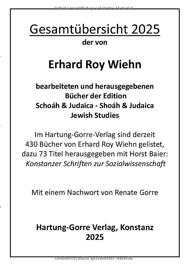 Katalog zu den von Erhard Roy Wiehn bearbeiteten und herausgegebenen Büchern der Edition Schoáh & Judaica - Shoáh & Judaica / Jewish Studies (German Edition) full version