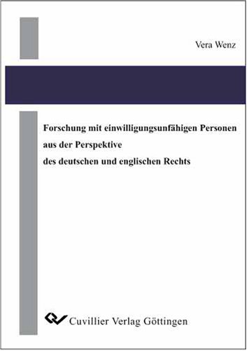 Forschung mit einwilligungsunfähigen Personen aus der Perspektive des deutschen und englischen Rechts full version