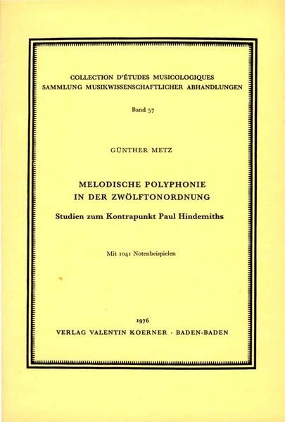 Melodische Polyphonie in der Zwölftonordnung: Studien zum Kontrapunkt Paul Hindemiths (Sammlung musikwissenschaftlicher Abhandlungen ; Bd. 57) (German Edition) full version