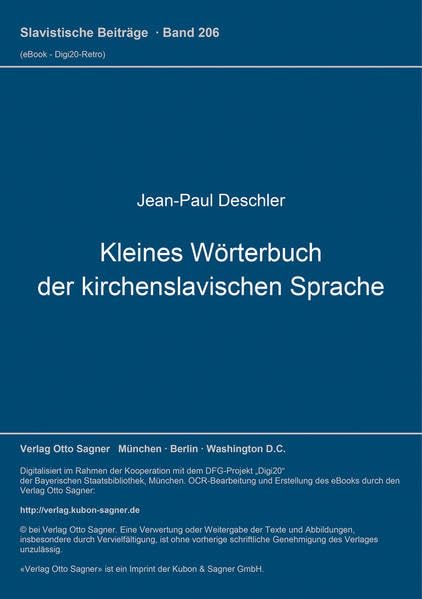 Kleines Wörterbuch der kirchenslavischen Sprache: Wortschatz der gebräuchlichsten liturgischen Texte mit deutscher Übersetzung (Slavistische Beiträge) (German Edition) full version