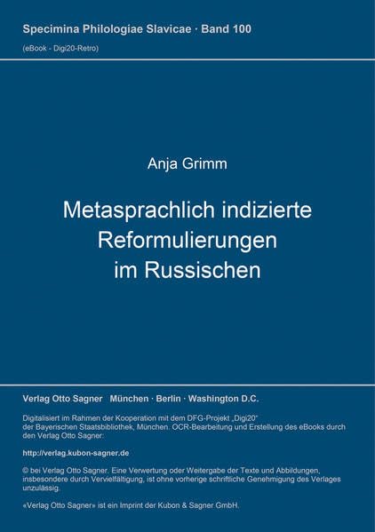 Metasprachlich indizierte Reformulierungen im Russischen (Specimina philologiae Slavicae) (German Edition) full version