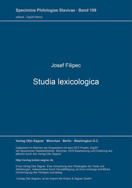 Studia lexicologica: Nachdruck besorgt von Ernst Eichler (Specimina philologiae Slavicae) (German Edition) full version