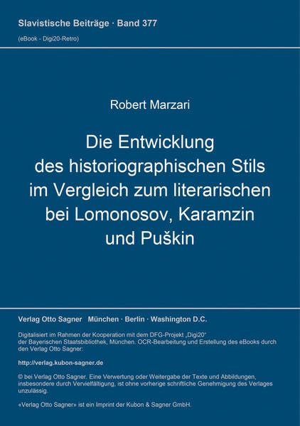 Die Entwicklung des historiographischen Stils im Vergleich zum literarischen bei Lomonosov, Karamzin und Puškin (Slavistische Beiträge) (German Edition) full version