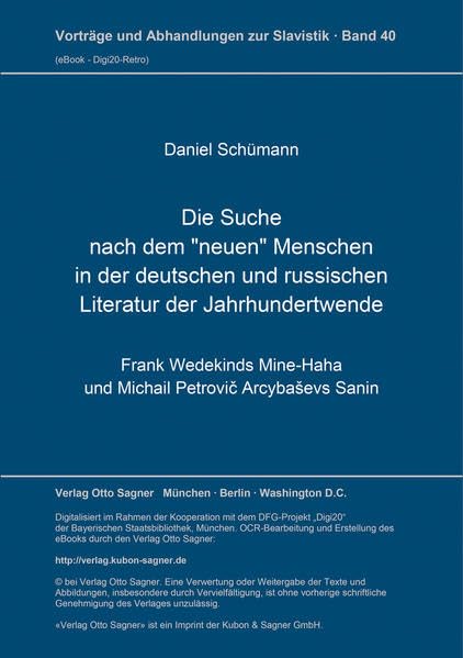 You are about to access our book library "Die Suche nach dem "neuen" Menschen in der deutschen und russischen Literatur der Jahrhundertwende: Frank Wedekinds Mine-Haha und Michail Petrovič ... Abhandlungen zur Slavistik) (German Edition) full version"