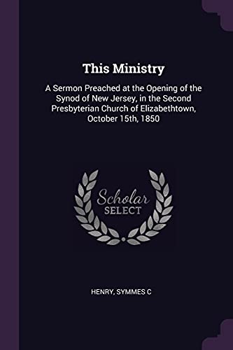 This Ministry: A Sermon Preached at the Opening of the Synod of New Jersey, in the Second Presbyterian Church of Elizabethtown, October 15th, 1850 full version