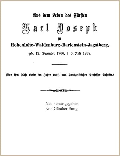 Aus dem Leben des Fürsten Karl Joseph zu Hohenlohe-Waldenburg-Bartenstein-Jagstberg, von ihm selbst diktiert (German Edition) full version