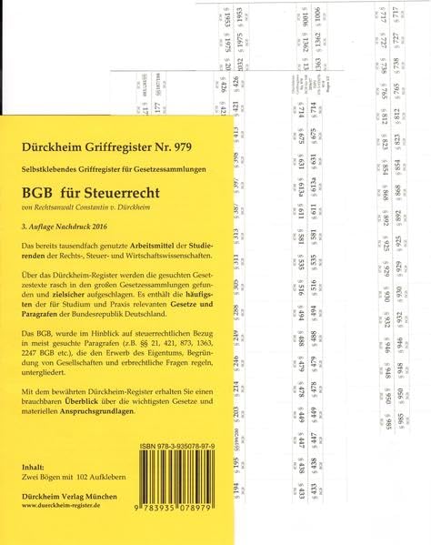 BGB für Steuerrechtler, 102 bedruckte Griffregister (2012): Bedruckte Folienreiter zur Befestigung an Trennblättern oder Buchseiten. Über das ... steuerrechtlicher Relevanz des BGB. full version