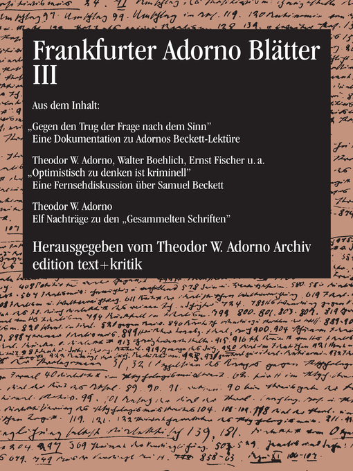 Frankfurter Adorno Blätter III full version