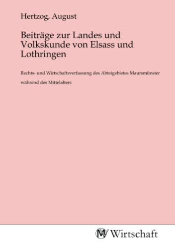 Beiträge zur Landes und Volkskunde von Elsass und Lothringen: Rechts- und Wirtschaftsverfassung des Abteigebietes Maursmünster während des Mittelalters (German Edition) full version