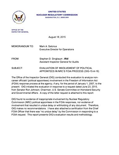 Evaluation of Involvement of Political Appointees in Nrc's Foia Process. full version