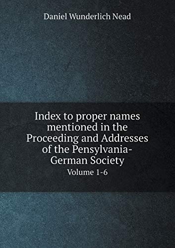 Index to proper names mentioned in the Proceeding and Addresses of the Pensylvania-German Society Volume 1-6 full version