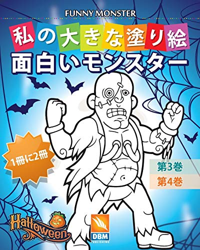 面白いモンスター - Funny Monsters - 1冊に2冊 - 第3巻 + 第4巻: 私の大きな塗り絵 - 50色のイラスト full version