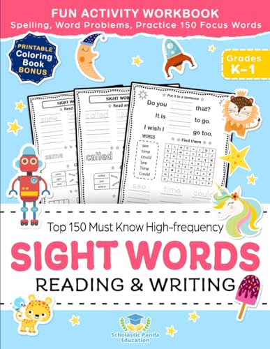 Sight Words Top 150 Must Know High-frequency Kindergarten & 1st Grade: Fun Reading & Writing Activity Workbook, Spelling, Focus Words, Word Problems (Elementary Books for Kids) full version