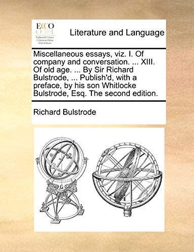 You are about to access our book library "Miscellaneous essays, viz. I. Of company and conversation. ... XIII. Of old age. ... By Sir Richard Bulstrode, ... Publish'd, with a preface, by his son Whitlocke Bulstrode, Esq. The second edition. full version"