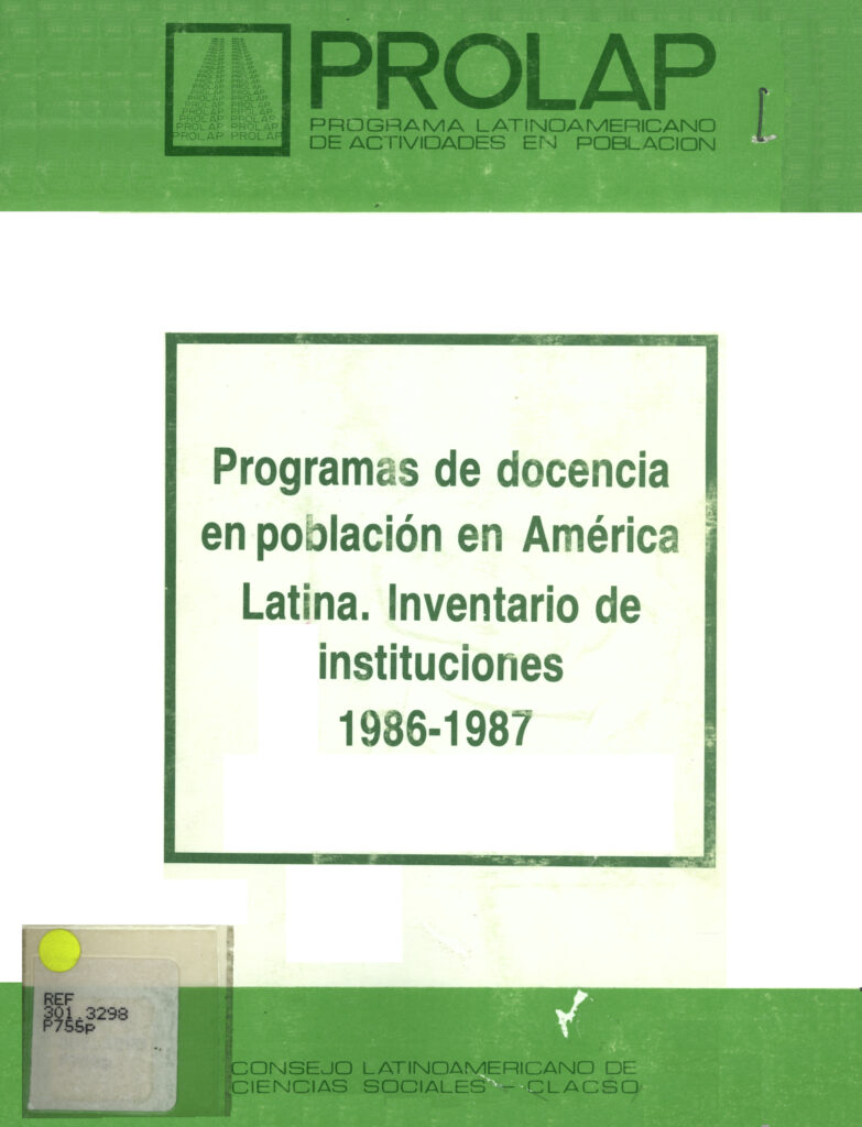 Programas de docencia en población en América Latina: inventario de instituciones (1986-1987) full version