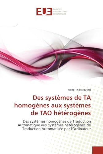 You are about to access our book library "Des systèmes de TA homogènes aux systèmes de TAO hétérogènes: Des systèmes homogènes de Traduction Automatique aux systèmes hétérogènes de Traduction Automatisée par l'Ordinateur (French Edition) full version"