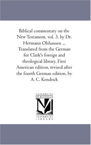You are about to access our book library "Biblical commentary on the New Testament, vol. 3, by Dr. Hermann Olshausen ... Translated from the German for Clark's foreign and theological library. ... German edition, by A. C. Kendrick: Vol. 3 full version"