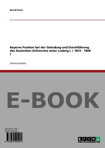 Bayerns Position bei der Gründung und Durchführung des Deutschen Zollvereins unter Ludwig I. ( 1825 - 1848 ) (German Edition) full version