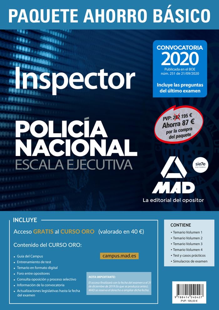 Paquete Ahorro BÁSICO Inspector de Policía Nacional. Ahorra 87 € (Temario 1, 2, 3 y 4; Test y casos prácticos; Simulacros de examen y acceso gratis a Curso Oro) full version