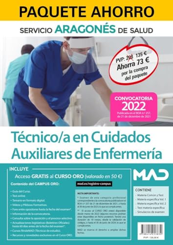 Paquete Ahorro Técnico/a en Cuidados Auxiliares de Enfermería del Servicio Aragonés de Salud. Ahorra 73 € (incluye Temario y Test materia común; ... Simulacros examen y acceso a Curso Oro) full version